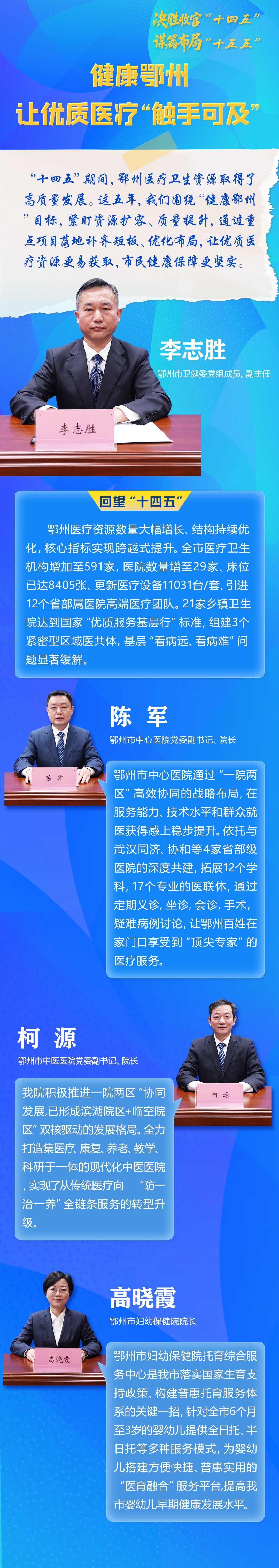 荆楚网(湖北日报)(记者金康刘路通讯员胡岩)11月19日,鄂州市召开主题为“一定完成‘十四五’规划和布局‘十五五’”系列新闻发布会。鄂州市卫健委总结了“十四五”期间全市医疗卫生资源高质量发展取得的主要成就和重要进展,展望了“十五”期间建设健康鄂州的新规划。